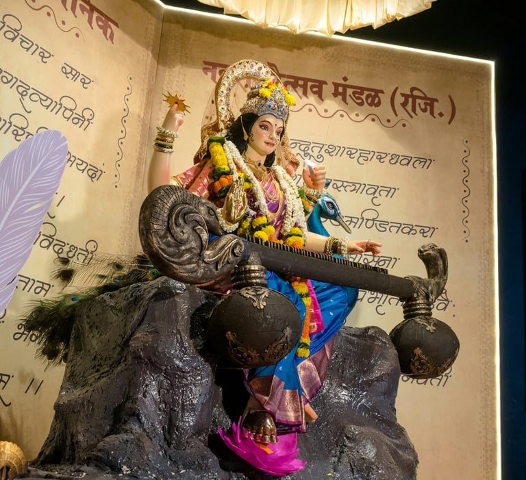 Basant Panchami par har taraf peela rang (Yellow) dikhayi deta hai kyunki yeh sarson ke phoolon aur khushali ka rang hai. Log peele kapde pehente hain aur Maa Saraswati ko peele phool aur meethe chawal (Kesari Bhat) chadhate hain.